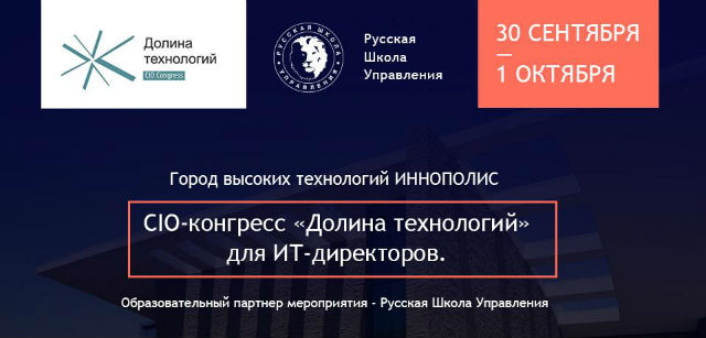 30 сентября и 1 октября в Иннополисе (Татарстан) проходил CIO-конгресс «Долина технологий», который собрал прогрессивных ИТ-директоров со всей России. Главной темой дискуссий стало управление инновациями и новая роль CIO в системе управления компанией. Русская Школа Управления стала образовательным партнером мероприятия.